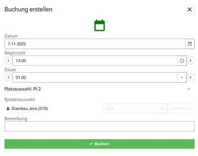 2.Platz und Zeit auswählen: Wähle über den Buchungsplan das gewünschte Datum, die Startzeit und die entsprechende Dauer aus. Bestimme den gewünschten Platz und klicke auf Buchen.